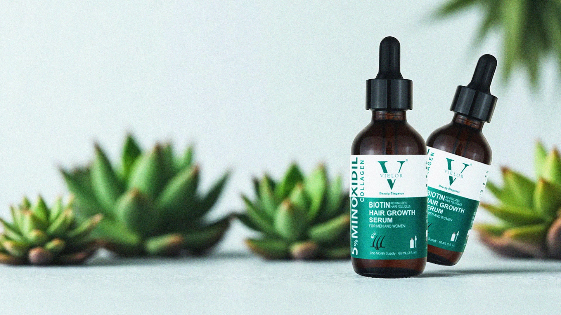 Vielor Biotin Hair Growth Serum is enriched with biotin & plant oils, promoting hair growth & reducing hair fall.
