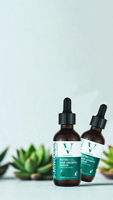 A powerful hair care formula that revitalizes hair follicles,pro;otes growth, and strengthens hair strands. Infused with 5% Minoxidil and biotin. It effectively combats hair thinning and encourages thicker, healthier hair.